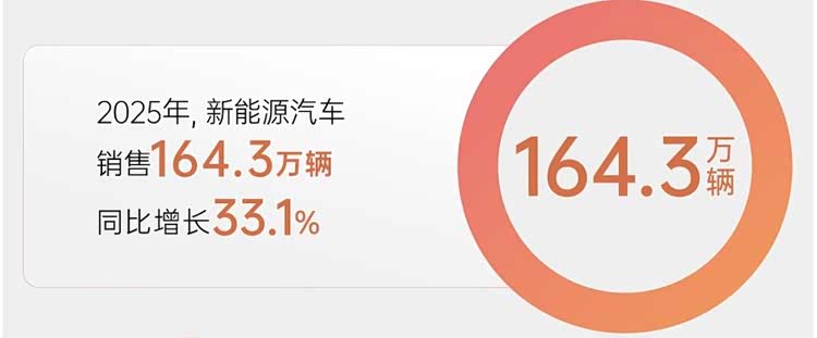 2025年,上汽新能源汽车销售164.3万辆,再创历史新高,同比增长33.1%,销量规模位居行业头部阵营。