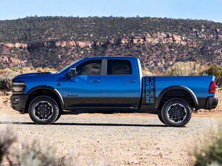 相比TRX的性能取向,RAM Power Wagon Cummins Turbo Diesel版的核心逻辑完全不同。该版本在外观上强调功能性比例,整体造型更偏向传统重载皮卡风格。26.1度接近角、26.0度离去角与20.6度纵向通过角的组合,配合335mm离地间隙,使其在复杂地形下具备稳定通过能力。这种设定并不追求高速表现,而是服务于低速、大扭矩输出环境,例如拖拽、工地道路或山区穿越。