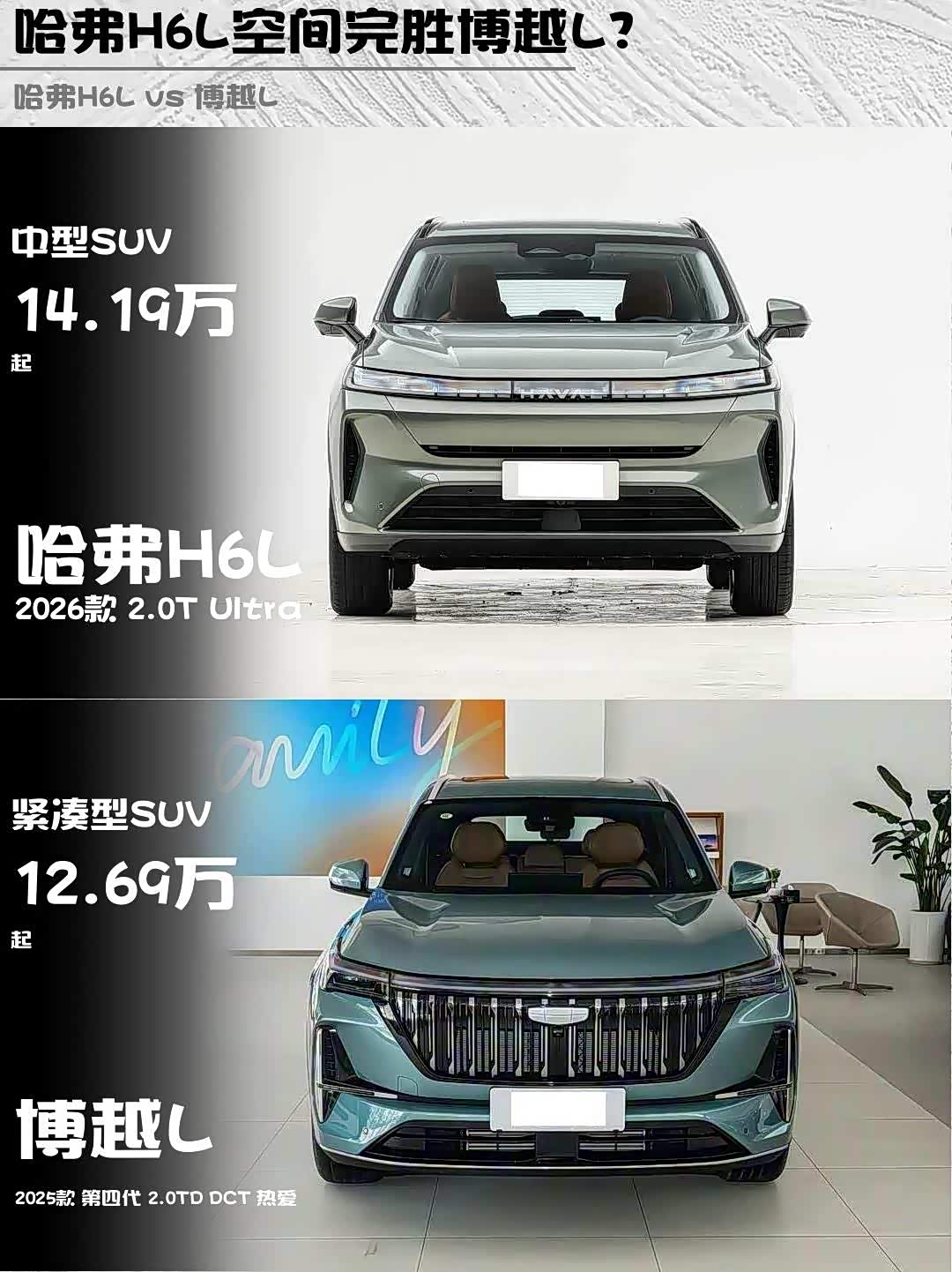 最后说价格:H6L 2.0T Ultra指导价14.19万,博越L 2.0TD热爱版12.69万。要空间选H6L,要智能选博越L。个人觉得H6L更适合经常全家出游的,博越L更适合都市科技控。你们会pick哪款?评论区见!👇