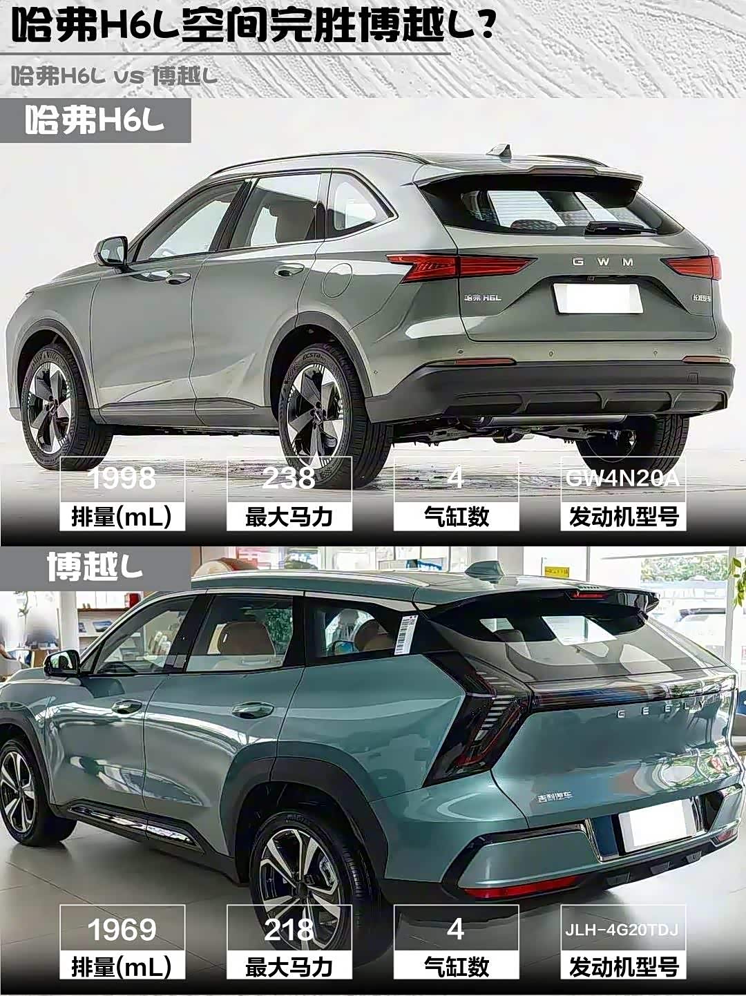 都是2.0T但性格完全不同!H6L的238马力+385N·m扭矩,红绿灯起步明显更冲,9DCT变速箱高速超车降档超果断。博越L的218马力更注重平顺性,7DCT在堵车时反而更跟脚。底盘方面H6L过减速带更柔,博越L过弯支撑性更好,看你要舒适还是运动了🏎️