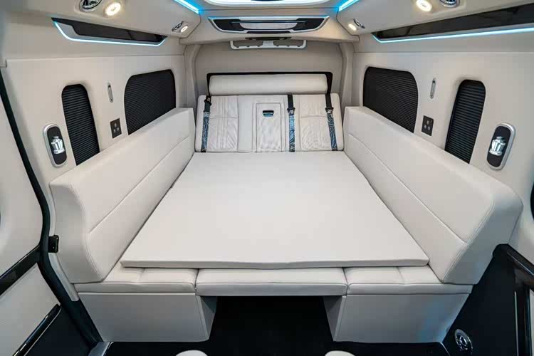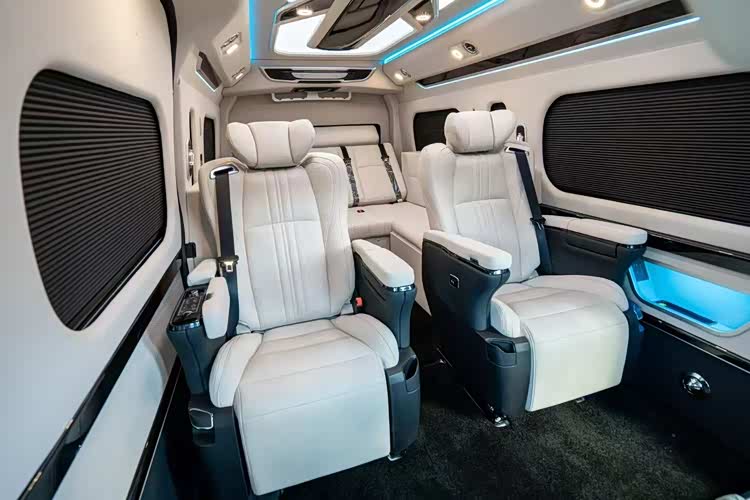 贯穿式腰线从前翼子板延伸至尾灯,犹如一条灵动的线条,勾勒出动感的轮廓,使车辆在静态中也能展现出一种动态的美感。电动侧滑门开启宽达800mm,这一宽敞的开口设计让乘客上下车从容优雅,无论是商务人士穿着正装,还是携带大件物品,都能轻松进出。