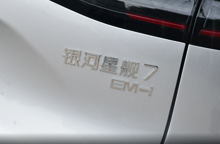 在车身侧面,新款银河星舰7EM-i使用传统的车身轮廓,立体的型面搭配逐渐上扬的侧裙线条,让人感受到一些运动气息。这款车型并没有使用悬浮式车顶设计,也没有使用隐藏式门把手造型,但是看起来并不落伍。在车尾处,大尺寸的扰流板与黑色的后包围装饰,展现出年轻运动气息。熏黑的贯穿式尾灯潮流感较强,展现出科技感,并且拉宽了它车尾的视觉宽度。