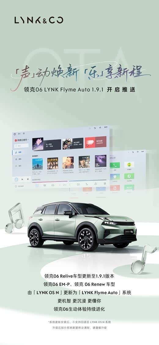 现在年轻人早已习惯多设备协同生活,手机与车机的互联,不只是需要歌曲、导航的无缝衔接,更期待互联后能同步个性化设置、跨设备语音控制,甚至实现多场景功能联动。这种对互联“进阶体验”的追求,正在成为车机加分的关键。领克精准捕捉到这份需求,近期为06系列带来车机更新:领克06 Relive OTA至1.9.1版本,领克06 EM-P、领克06 Renew升级为LYNK Flyme Auto系统,在延续原有顺畅互联优势的基础上,秉持“更机智、更沉浸、更懂你”的核心,强化多设备协同的深度与广度,让跨设备使用更贴合年轻人的数字生活节奏。