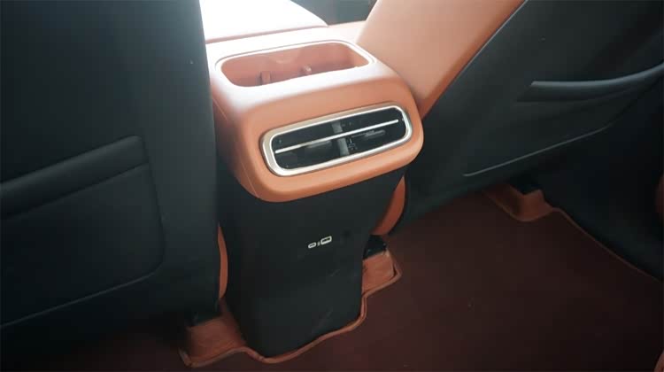 另外这台24款的智享型也是全系唯一一个没有二三排独立空调出风口的款型,预留给高配的出风口都用盖板堵上了。后舱仅有的一个出风口占据了Console上方的位置,不过26款就没有这样的问题了,这个位置已经被后排的空调调节面板所替代。Console部分搭配两个USB口满足后排充电需要。二排的杯架也在Console上以便腾出更多的后舱空间。