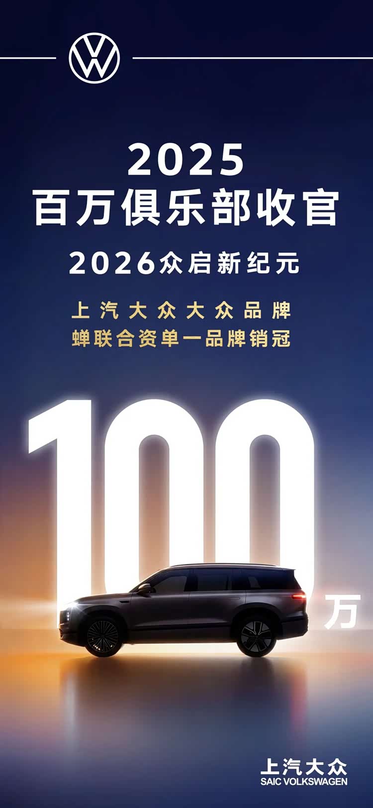 上汽大众:2025年终端销量106万辆,2026年强势开跑