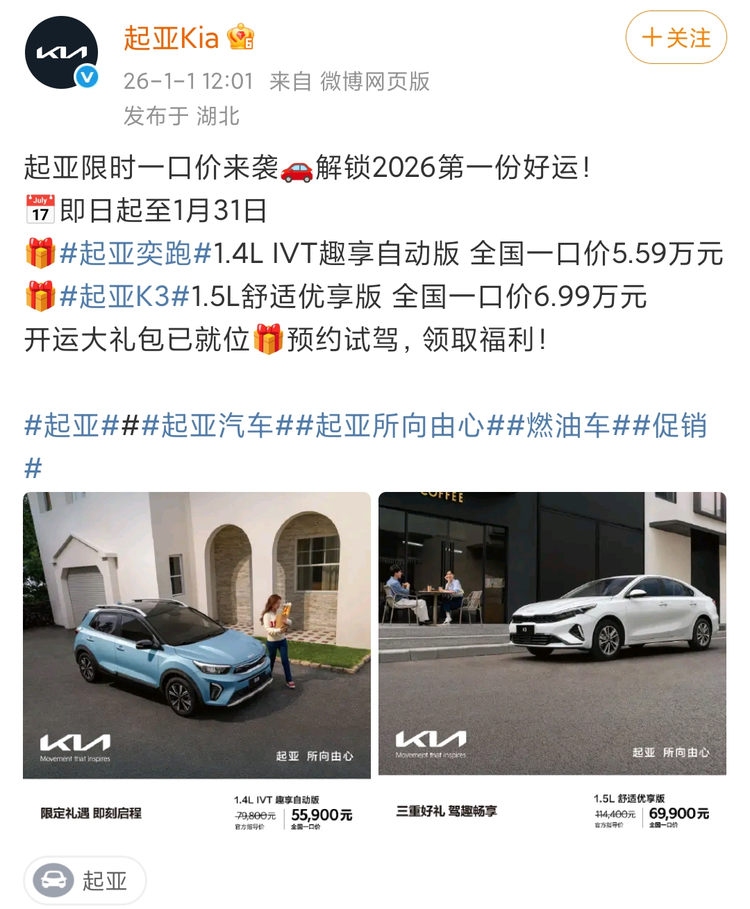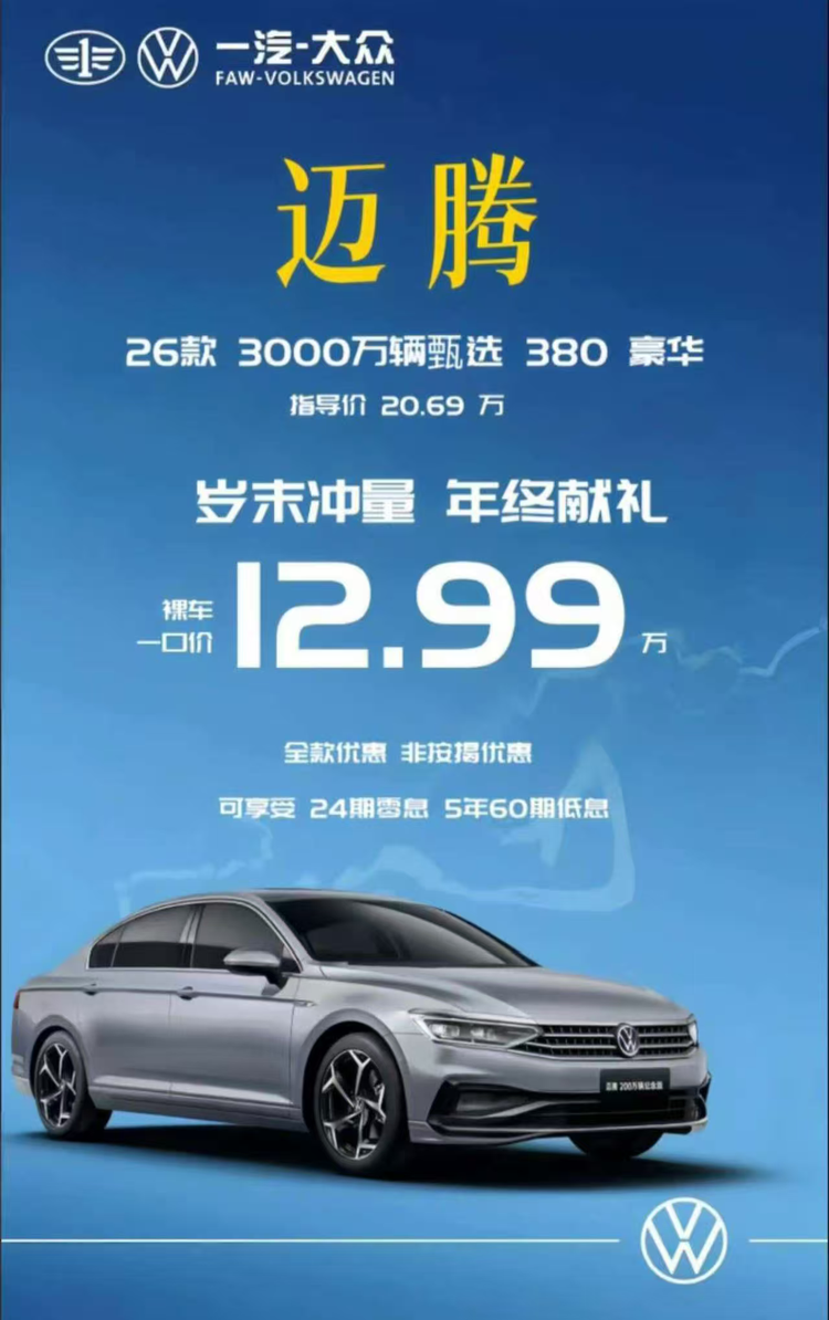 随后, 一汽大众迈腾(参数|询价)3000万辆臻选380豪华版推出一口价12.99万元,相较20.69万元的指导价打了六折;凯迪拉克全新XT5推出限时惊喜价22.99万元起,比指导价便宜了15万元,XT4一口价15.99万元起,CT5限时售价19.99万元起;尚界H5推出现金优惠9000元;星途置换优惠1万元、现金优惠2.5万元;起亚宣布奕跑1.4L CVT趣享自动版一口价5.59万元;五菱新能源宣布购置税补贴至高 1.5 万元;小米YU7推出3年0息金融政策;沃尔沃XC70可享高达1.4万元的购置税直补。