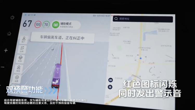 长途冷链运输里程长、路况复杂,尤其运输冷链生鲜、精密设备等货物,安全运营是企业生存发展的底线。面对严苛挑战,欧曼星辉智能辅助驾驶牵引车结合驾驶司机操作状态、路况环境等场景,从感知、预警到主动干预落地智慧安全功能,构筑全方位防护体系。高速行驶中,车道保持功能通过摄像头识别车道线,行驶轨迹更安全稳定。当遇到前车突然减速或障碍物时,自动紧急制动通过前摄像头和雷达检测前方物体,锁定前车并且系统自动介入,更安全稳定运行。面对相邻车道压线或超宽车辆,微避障功能在关键时刻自动小幅转向避让,留出车辆安全行驶空间。