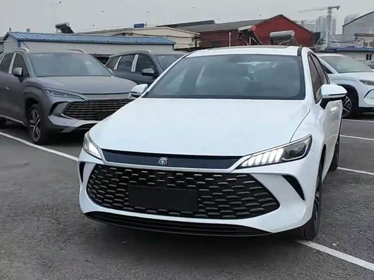 外观方面,秦PLUS DM-i沿用现款“龙颜美学”设计风格,但针对细节做出了些调整!前脸大嘴样式的黑色格栅富有张力,带有“秦”字车标的黑色饰板与左右LED大灯相连,灯组眼神犀利,而前包围两侧留有C状导流槽造型。