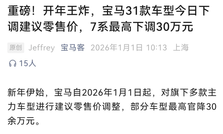 宝马又又又降价了!并且值得注意的是,这次下调售价不是小范围的终端4S店行为,而是由宝马官方整的活儿。