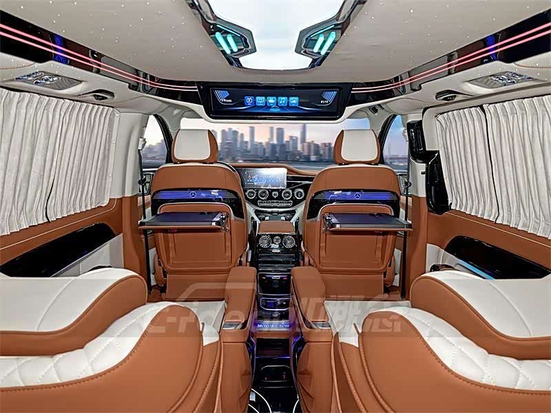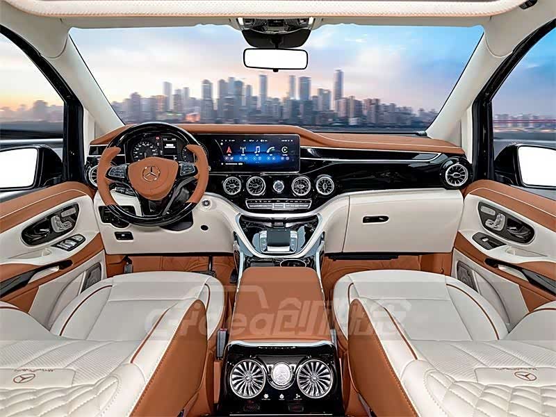 奔驰威霆改装豪华七座棕白双拼色内饰,效果让人百看不厌!