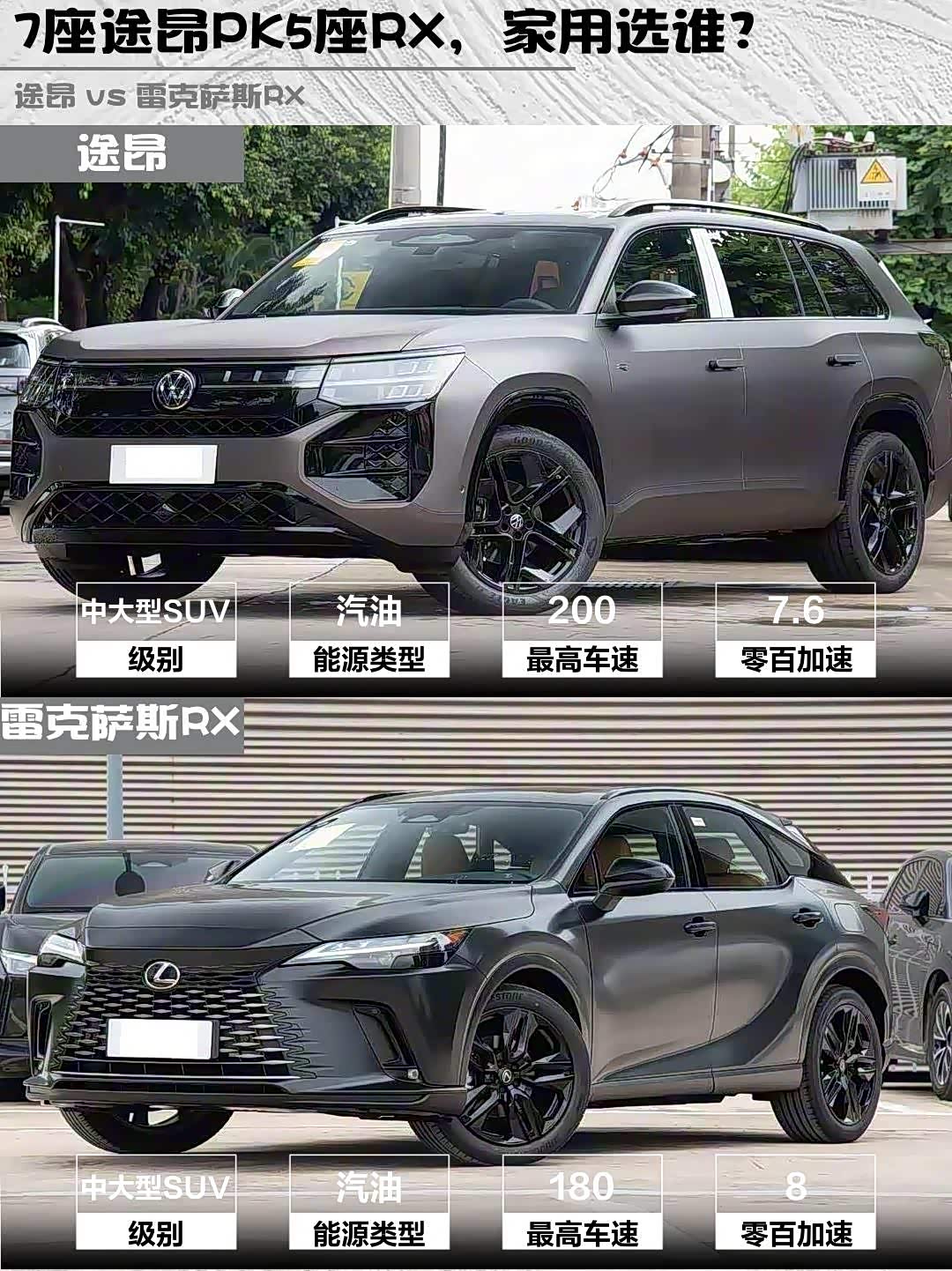 车家号·0浏览·2026-01-06 10:19 · 北京【真实车主测评】途昂Pro vs 雷克萨斯RX(参数|询价)黑武士!30万级SUV神仙打架🔥