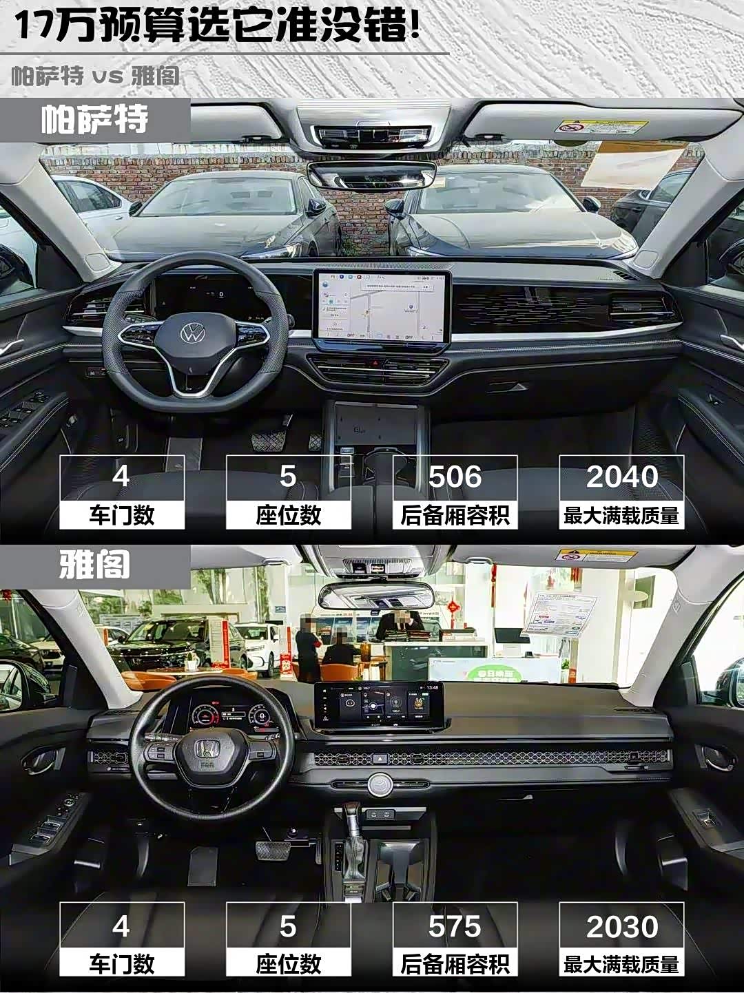 最后说价格:两车指导价只差100块!帕萨特终端优惠大(听说有的地方能砍3万),雅阁保值率略高一丢丢。要我说,追求驾驶质感选帕萨特,看重省心省钱选雅阁,你们觉得呢?