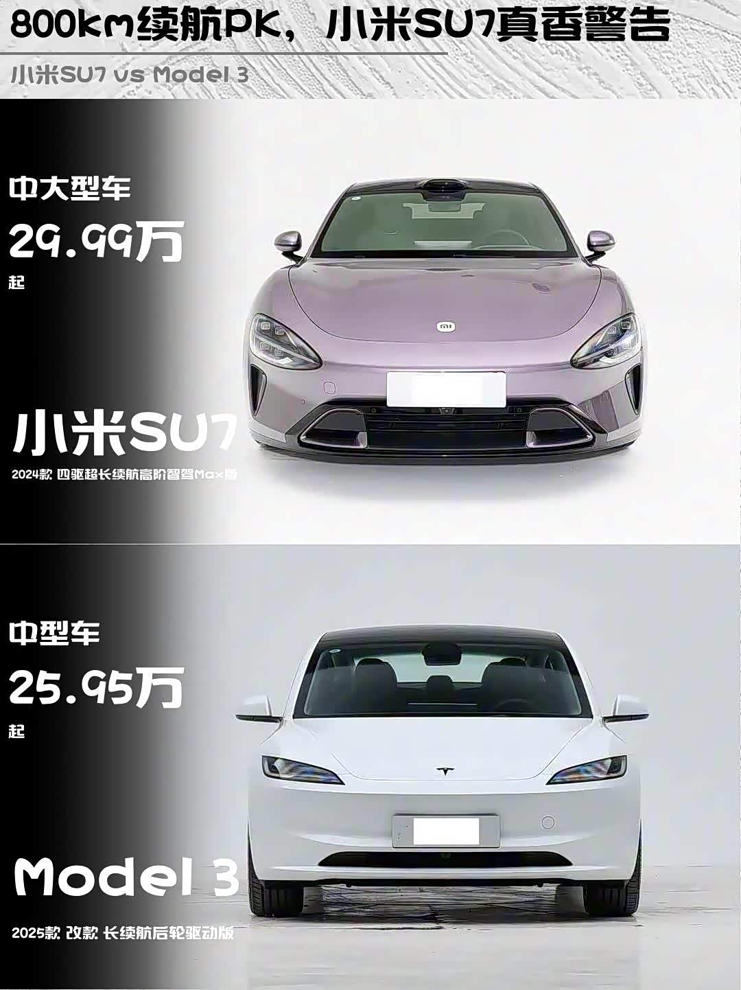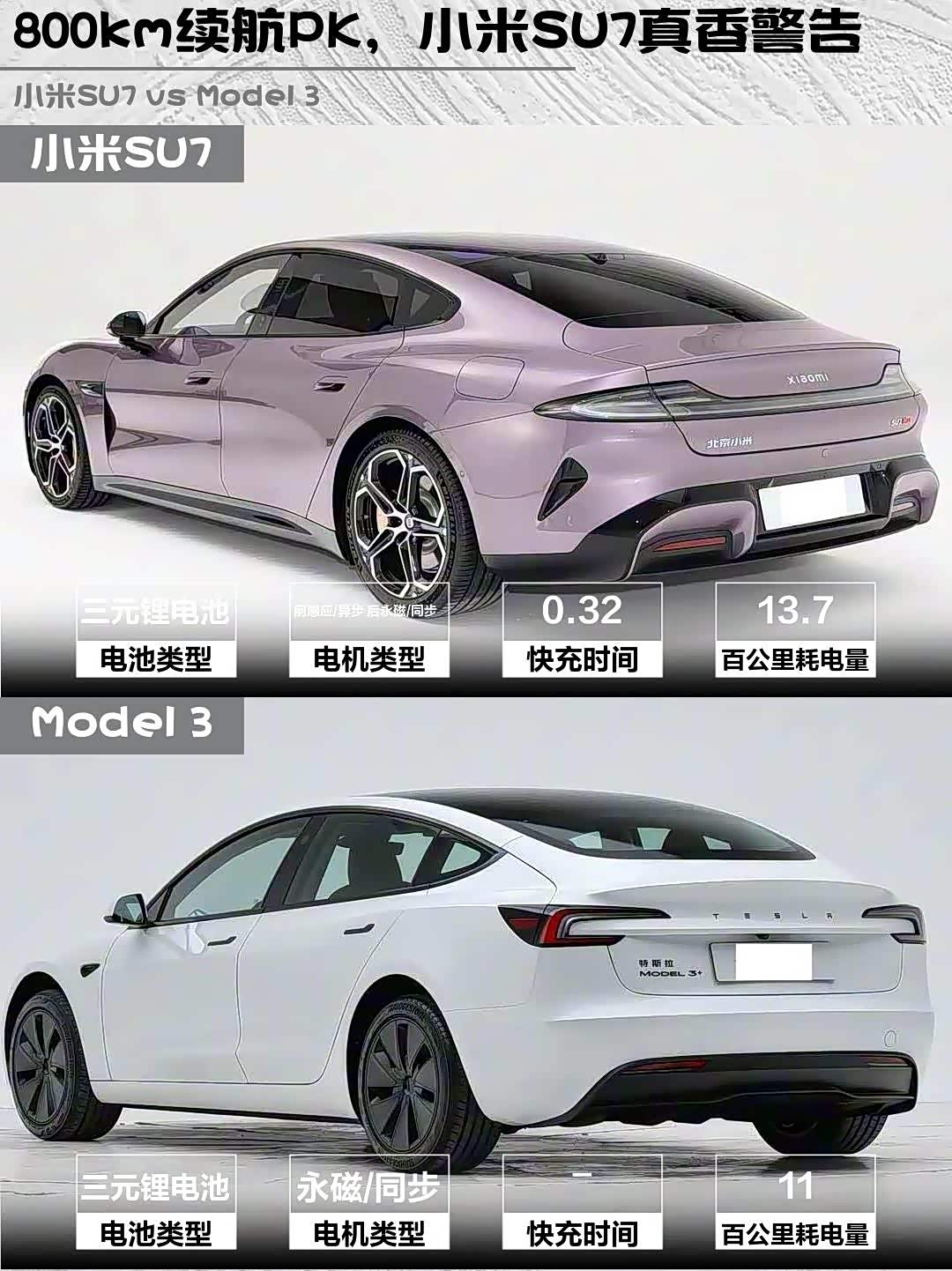 小米CLTC 800km(实际550km左右),Model 3标称830km(实测能跑650km+)。但小米有800V超充,19分钟充80%比Model 3快30%!着急补能时真的香⚡