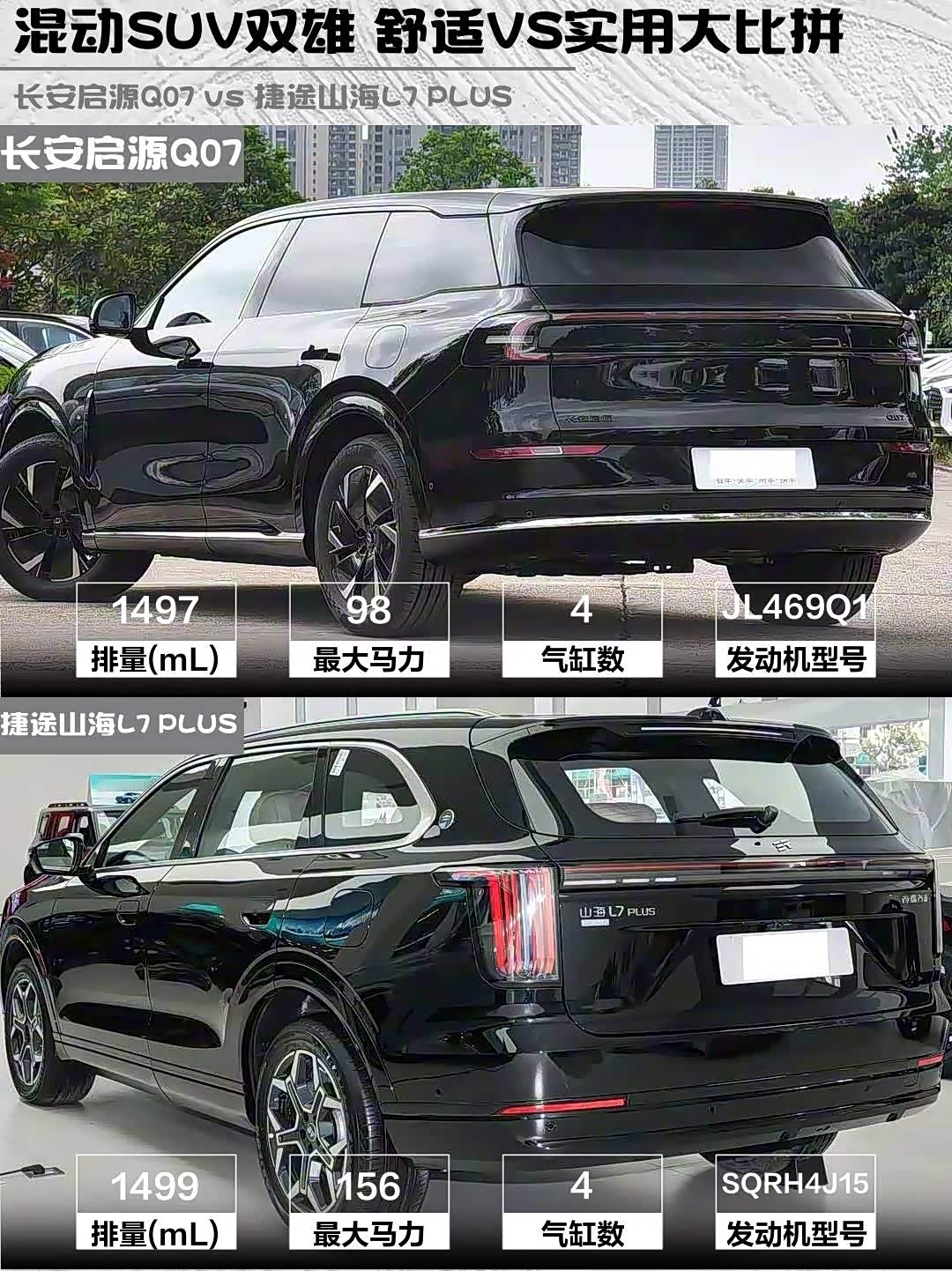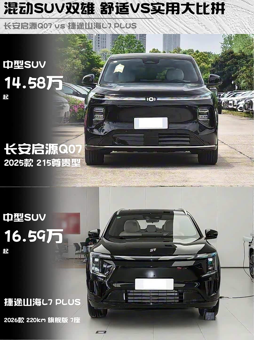 最近在选混动SUV的朋友看过来!👀 今天深度对比两款15万级热门选手——长安启源Q07 2025款215尊贵型(14.58万)和 捷途山海L7 PLUS(参数|询价) 2026款220km旗舰版7座(16.59万),实测干货直接上菜!🔥
