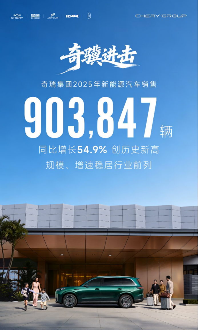 首先从销量来看,奇瑞集团在2025年的新能源销量高达903,847辆,同比增幅达到了惊人的54.9%。不难看出,奇瑞已经进入到中国新能源的主流市场。在稳基盘、促新盘的同时,奇瑞旗下各个品牌也展现出势大力沉的协同效应。