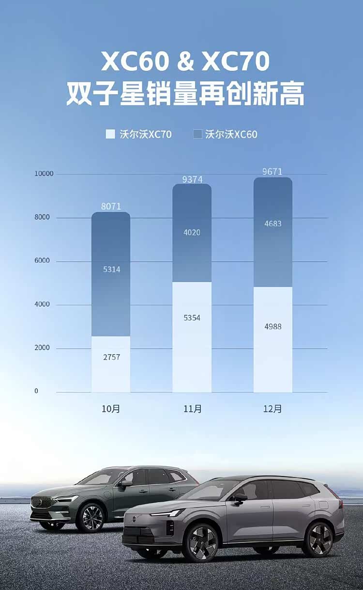 在2025年车市年末收官的激烈角逐中,沃尔沃汽车交出了一份暖意渐显的成绩单。官方数据明确显示,12月沃尔沃在中国大陆市场销量达到16,063辆,实现12.8%的环比增长,这也是其连续第三个月保持环比正增长态势,以稳健上扬的姿态为全年市场表现画上句点。从车型贡献来看,全新XC70插混SUV与经典热销车型 XC60(参数|询价)成为绝对销量主力,两者合计贡献超九成增长份额,不仅稳稳撑起销量增长的“半边天”,更直观印证了沃尔沃在新能源转型赛道上已找准核心方向,正加速驶入发展快车道。