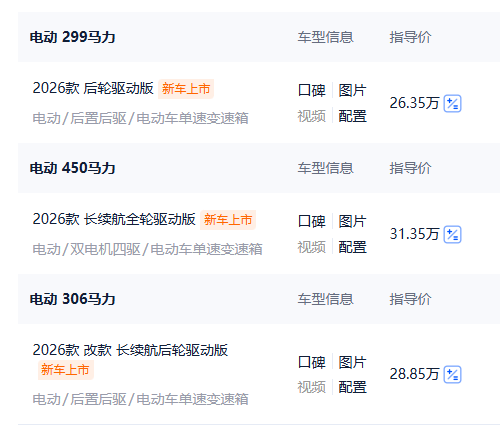 2026款特斯拉Model Y于1月6日上市,相较于以往高调的发布风格,此次年度改款仅通过更新官网产品页发布。新车共推出三个配置版本,指导价分别为:后轮驱动版26.35万元、改款长续航后轮驱动版28.85万元、长续航全轮驱动版31.35万元。核心变化仅在于中控屏升级至16英寸,其动力系统、续航里程、智能驾驶硬件乃至核心配置均与之前版本一致,此次改款堪称一次近乎零升级的年度更新。