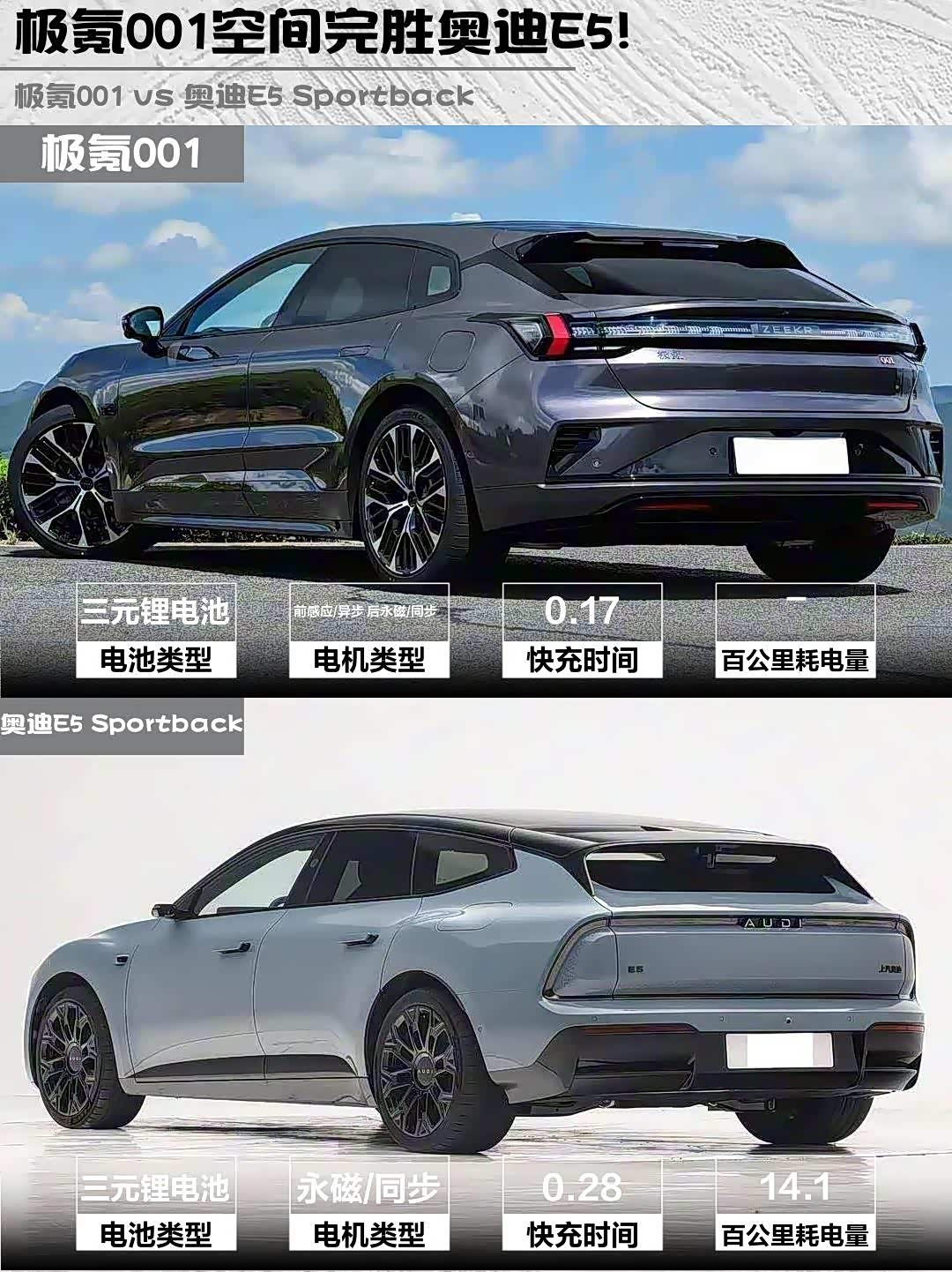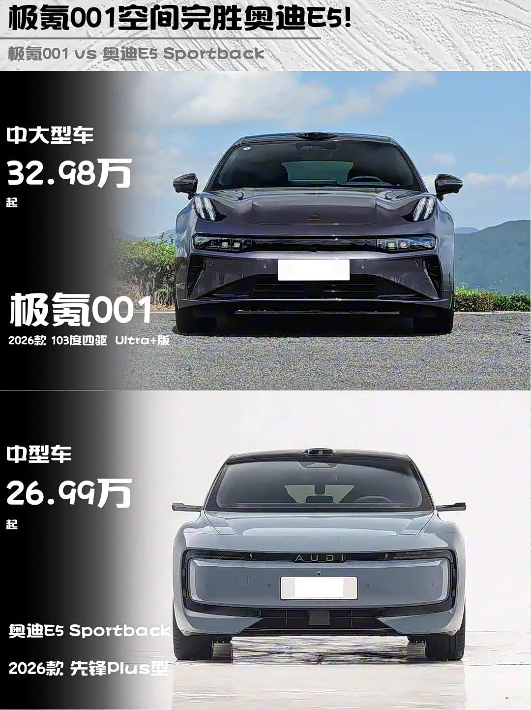 要性能炸裂+空间实用选极氪001,要德系精致+科技仪式感选奥迪E5。话说回来,你们觉得30万预算会选国产堆料王还是传统豪华品牌呢?