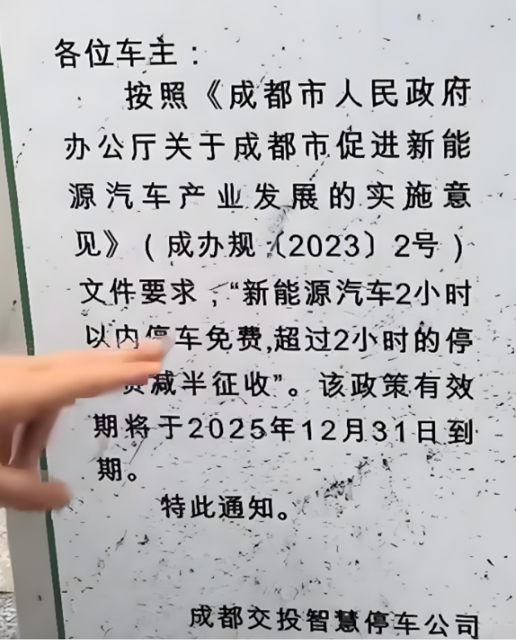 答案明确,未来在成都使用新能源汽车不再有停车优惠政策。
