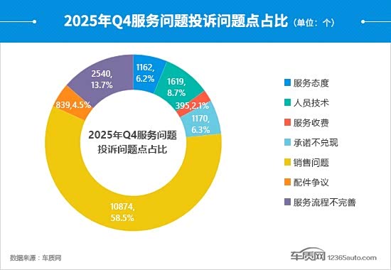 四季度的服务问题中,销售问题占比反弹,较三季度增加了12.1个百分点,在总量中的占比已趋近6成。此外,服务态度、人员技术的投诉故障数有所提升,占比也略有提高。上季度大幅增长的服务流程不完善,本季度占比减少10.7个百分点,回归常态区间。