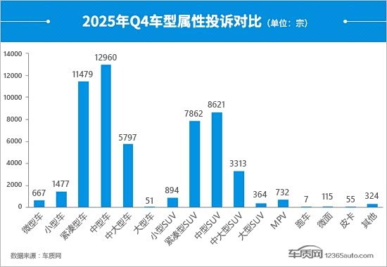 2、中型车投诉量“两连涨”。继2025年一季度投诉量暴涨后,四季度中型车投诉量再次攀升至短期高位。从投诉类型来看,质量问题仍是绝对的投诉焦点,占比超过总量的7成,美系和德系品牌中型车投诉尤为集中。结合具体投诉故障点分析,“部件老化”和“仪表台开裂”投诉问题数较多,多来自于合资品牌的老款车型。除此之外,“影音系统故障”和“灯罩裂纹或变形”成为投诉新增长点,两者投诉问题数环比均有大幅增长。
