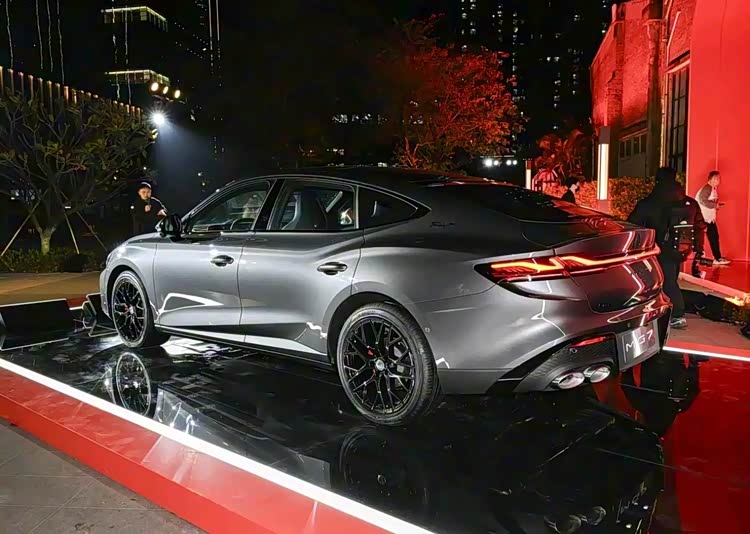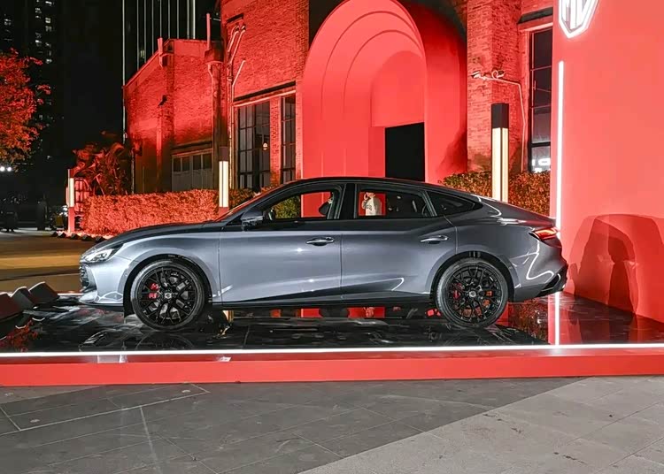 外观设计方面,新款MG7延续轿跑车型的Fastback溜背造型,搭配豹跃肩线设计,形成流畅的车身侧面线条。新车新增冰岛蓝配色,全系标配19英寸多辐轮毂及红色卡钳,同时配备无边框车门与三段式电动尾翼,该尾翼可在时速超过100km/h时自动展开,官方表示其设计目的在于提升高速行驶稳定性。前脸采用熏黑宽体猎爪矩阵式格栅,搭配数字猎瞳LED大灯组;尾部则配备贯穿式尾灯与双边四出排气布局,整体延续运动化设计风格。