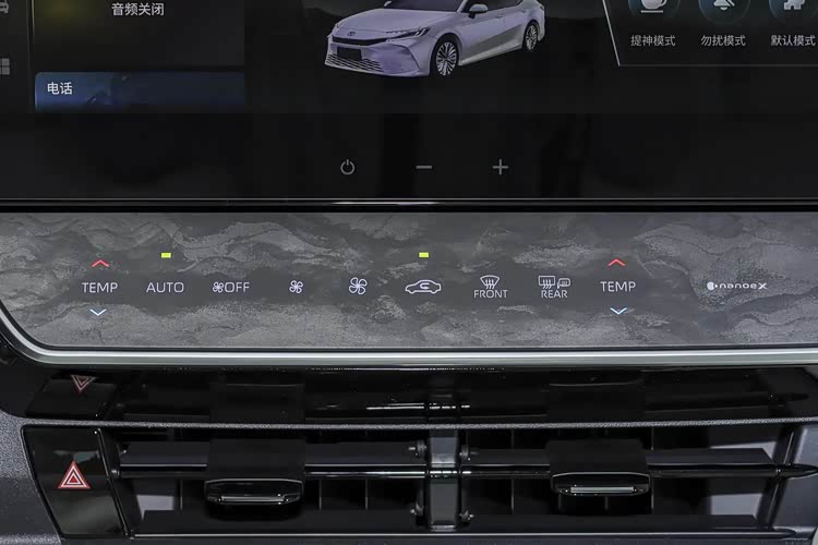 凯美瑞双擎HSE光辉版的内饰设计保持不变,采用全黑配色,配备真皮多功能方向盘、7英寸液晶仪表、10.25英寸中控屏,支持CarPlay、CarLife、HUAWEI HiCar手机互联和映射,但不支持联网、OTA升级和语音识别控制等,车机功能比较少。