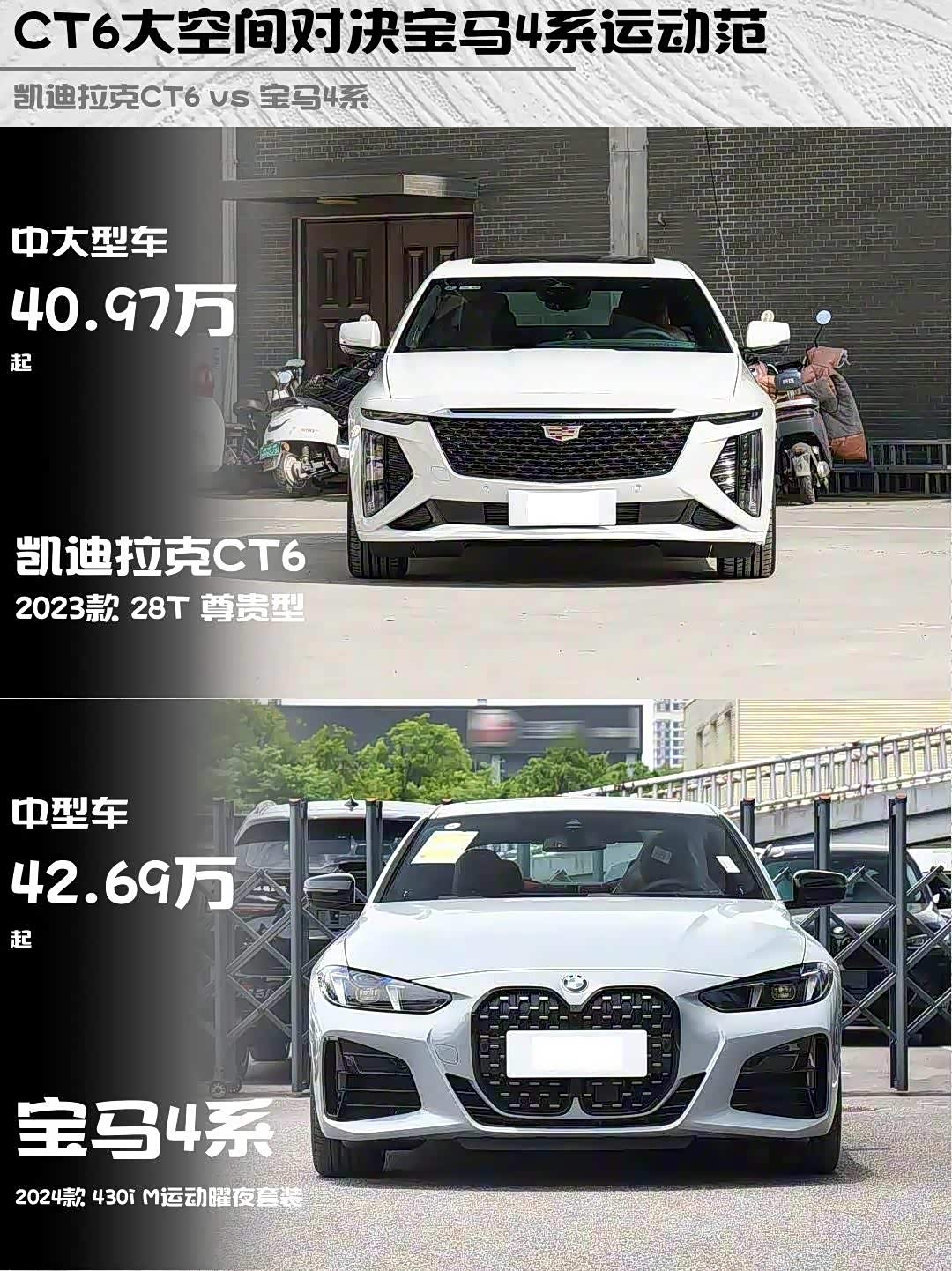 先看主角:2023款凯迪拉克CT6 28T尊贵型 vs 2024款宝马430i M运动曜夜套装