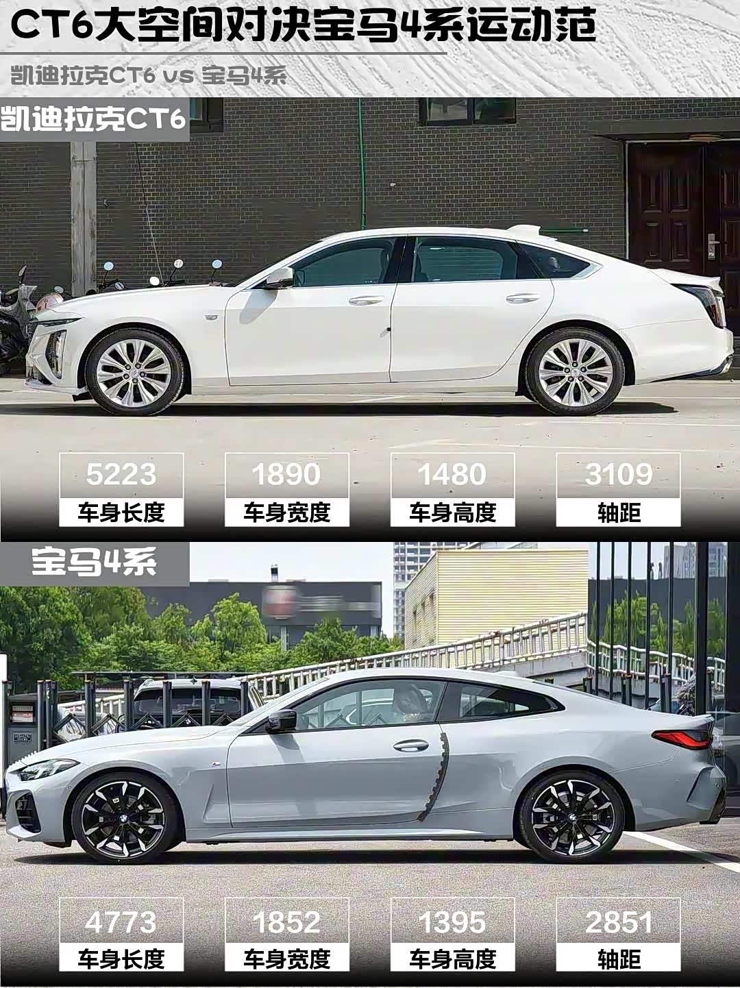 CT6是5米2的行政大轿车,430i是4米7的轿跑。一个像穿西装的总裁,一个像穿运动服的运动员,定位完全不同!