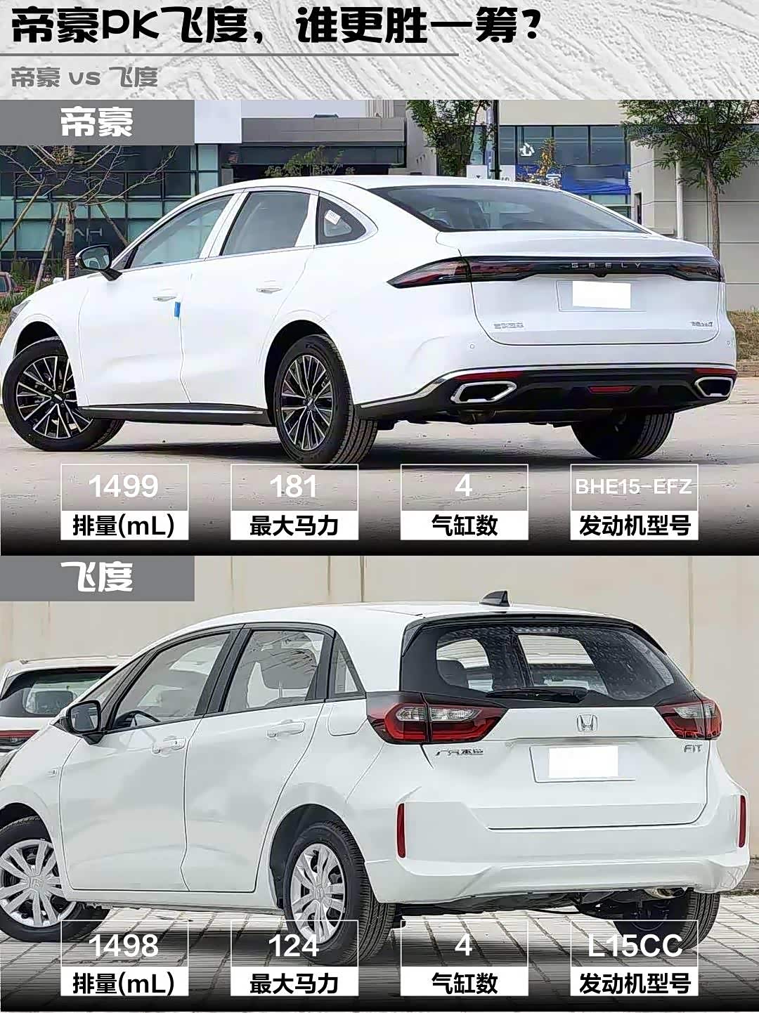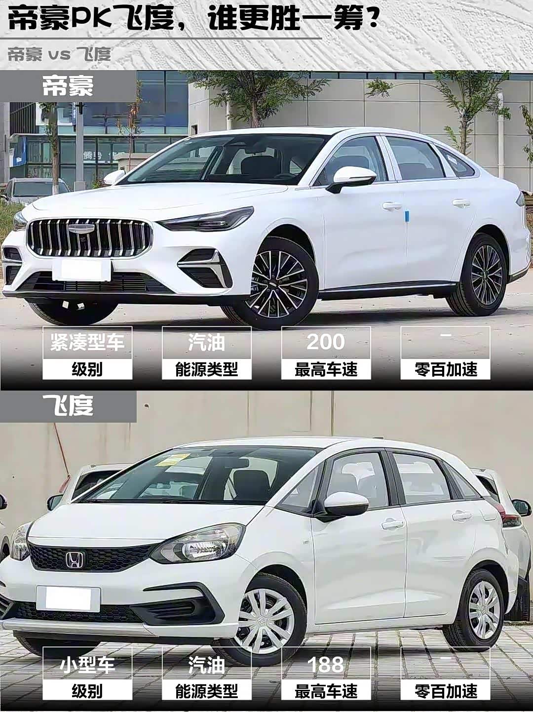 最近在选车的小伙伴看过来!今天给大家带来两款热门车型的深度对比—— 吉利帝豪(参数|询价)2026款 第5代 1.5T DCT尊贵型 vs 本田飞度2023款 1.5L CVT潮享版,都是8万级家轿,但性格完全不同!🔥