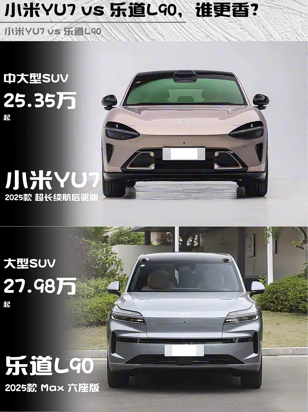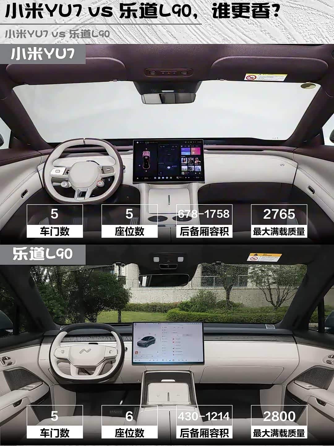 车家号·0浏览·2026-01-08 08:40 · 重庆最近后台好多人在问 小米YU7(参数|询价)和乐道L90怎么选?作为深度体验过两台车的车主,今天就从实际使用角度来场硬核对比🔥