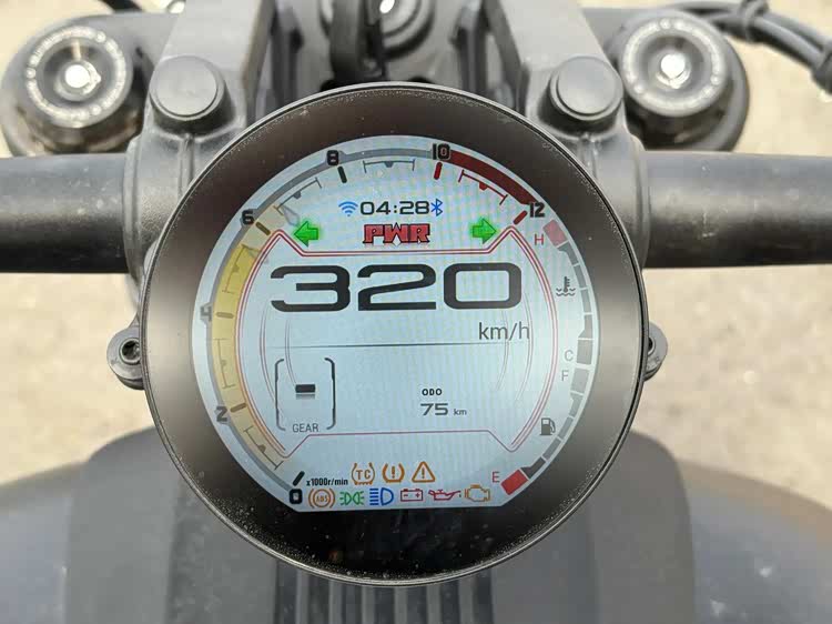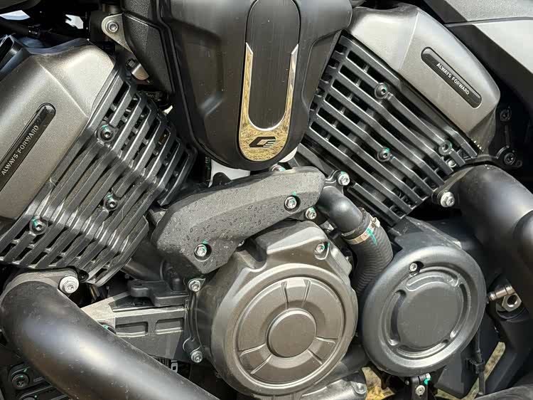 闪600V4 Cruise搭载了钱江自研的V型四缸水冷引擎,这款发动机实际排量561cc,最大功率50KW,最大扭矩54N·m,光看数据好像也不是很厉害,但是上手后的一瞬间你会感觉,这还是巡航车吗?