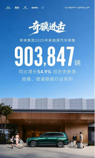 2025年,全球新能源汽车市场格局发生显著变化。在头部阵营稳固的同时,奇瑞集团凭借全年903,847辆的新能源销量、同比增长54.6%的强劲表现,自11月起连续两个月批发销量稳居行业前三,成功实现从技术储备到市场爆发的关键跨越,成为自主新能源领域不可忽视的核心力量。