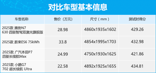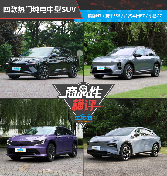 如今的国内SUV市场正呈现出“三足鼎立”的发展态势。紧凑型SUV凭借相对亲民的价格和适中的空间表现,吸引入门级家庭用户的目光。中大型SUV则通过宽敞舒适的乘坐体验和完善的功能,成为进阶型消费者的优选。相比之下,中型SUV虽然面临双重夹击,但依然凭借灵活的空间和不错的性价比,牢牢占据着稳定的市场份额。在往期的新车商品性评价中,我们曾经测试过多款纯电中型SUV。今天我们从中挑选了四款热门车型,分别是腾势N7、蔚来ES6、 广汽本田P7(参数|询价)和小鹏G7。本文将通过各项测试数据对比,看看四款车在商品性方面的表现孰优孰劣。