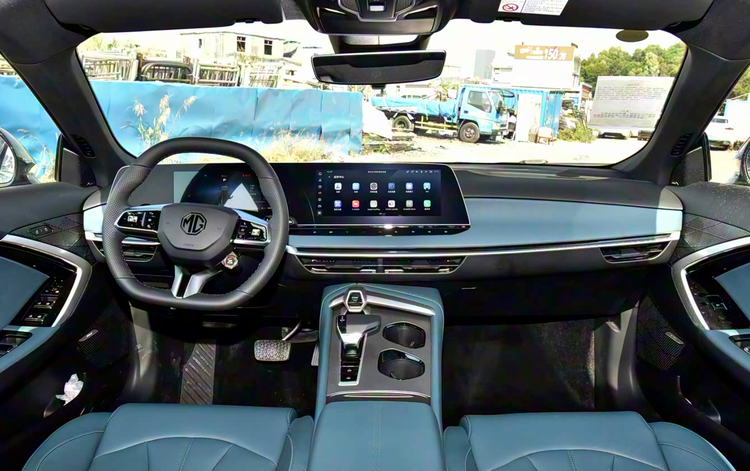 内饰方面,2026款MG7沿用以驾驶者为中心的环抱式座舱设计,配备33英寸一体式双联屏,内置高通骁龙8155芯片,保证车机系统的流畅运行和快速响应。此次改款后,车内最大的亮点之一是搭载了元神智舱AI语音大模型,显著提升了自然语音交互能力,支持连续对话/控制,从"打开车窗"到"寻找附近评分最高的饭店",系统能一气呵成地理解和执行。