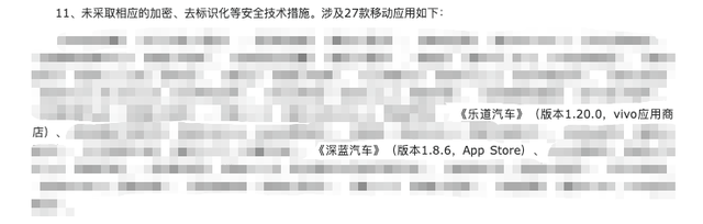 经检测发现,《乐道汽车》(版本1.20.0)27款移动应用因未采取相应的加密、去标识化等安全技术措施被通报。