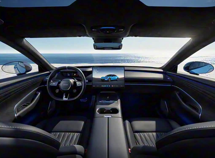 新一代小米SU7内饰没有什么明显的变化,方向盘经过重新设计,副仪表台造型进行调整,前排扶手采用对开式,中控台下方还提供无线充电面板和两个杯架,内饰一些细节还增加了翻毛皮材质,启动按键依然在方向盘上,比较热血。