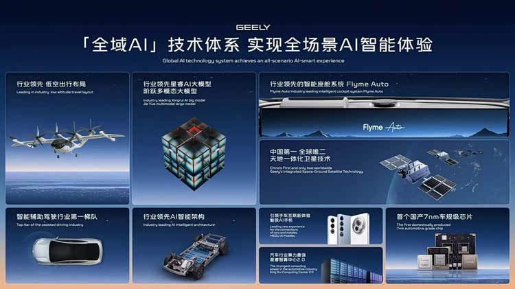 吉利在年初发布行业首个“智能汽车全域AI”技术体系,成为全球唯一完成AI智能化全方位布局的车企。这并非概念炒作,而是以算力、算法、大模型为底座,驱动全产业链升级的切实行动。从智能驾驶到座舱交互,AI已成为吉利产品的核心基因。