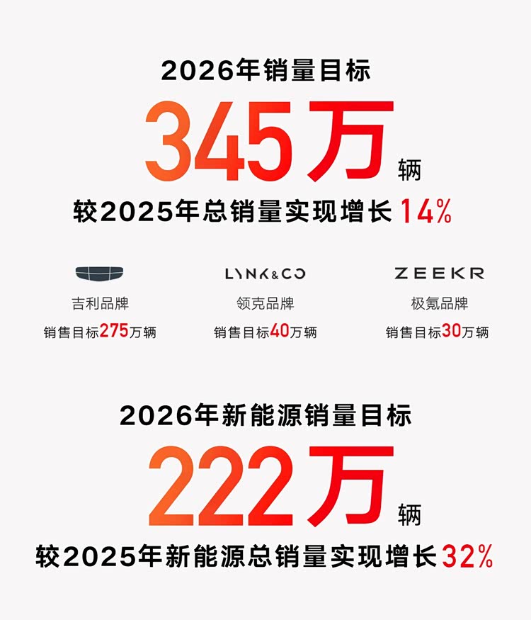 3,024,567辆,2025年吉利汽车不仅以同比增长39%的强劲势头,超额完成了300万辆的年度目标,更完成了一次历史性的跨越,首次迈入全球车企年销“三百万俱乐部”。