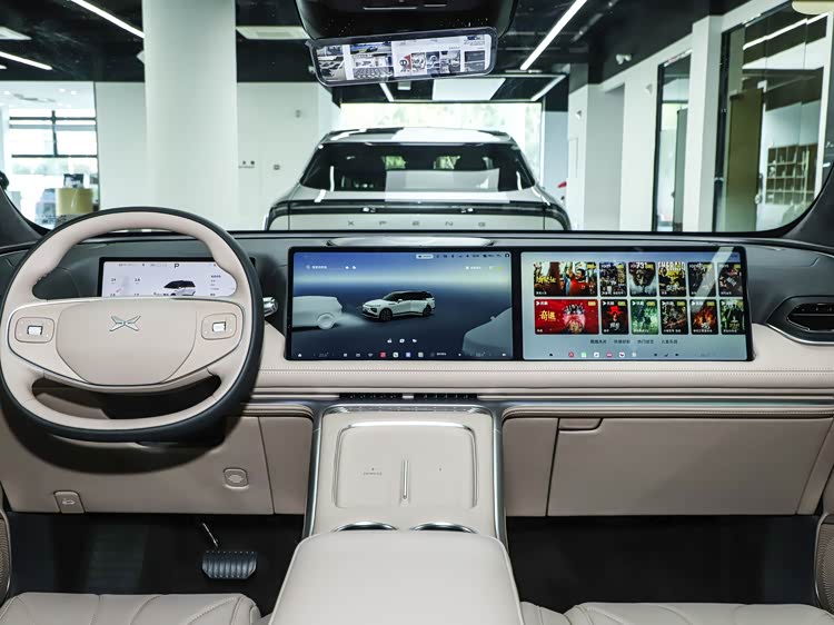 内饰方面,G9配备10.25英寸液晶仪表和两块14.96英寸联屏,中控布局强调信息集中和易操作。车辆支持5G车联网,提供DOCK自定义功能,可跨屏幕、跨设备进行信息投屏和车控互联,同时支持不同系统的手机互联操作。这样的配置在日常使用中,可方便实现多任务信息管理,满足驾驶者和乘员的互动需求。