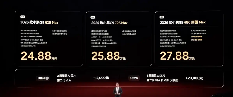 日前,我们从小鹏汽车官方获悉,2026款 小鹏G9(参数|询价)/G6迎来正式上市,小鹏G9共推出3款车型,售价区间为24.88-27.88万元;小鹏G6共推出2款车型,售价区间为17.68-18.68万元。作为改款车型,新车其主要针对车机芯片等配置进行升级。不同车型在动力和续航方面具备灵活选择,满足从日常通勤到长途出行的多样需求。价格定位和配置组合在中大型新能源SUV和中型轿车市场均有一定竞争力,为消费者提供不同购车方案。
