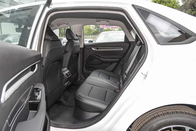 转到车尾,贯穿式的尾灯设计,搭配黑色饰板与英文标识,点亮后很是吸睛。牌照区域微微内凹,更显层次感。后包围则采用了黑色饰板包裹,结合隐藏式的排气布局,整体看时尚精致。
