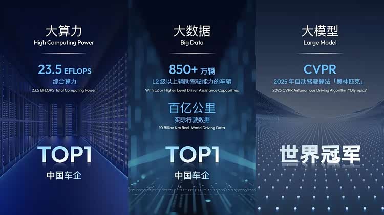 • 850 万车搭载辅助驾驶、累计百亿智驾里程、2500s万clips、百万级事故安全数据集;并强调“全生命周期数据闭环”。