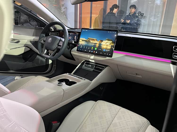 在车内设计上,12.8英寸的自适应旋转悬浮Pad搭载了最新版本的DiLink 5.0操作系统,并且能够支持5G网络以及分屏多任务的操作功能。此外,还增加了一个新配置——全景摄像头,可在驾驶过程中实时观察路况并进行拍摄记录。这款全液晶仪表盘的尺寸仍然保持在8.8英寸。全新设计的双玻璃前大灯在夜间行车时更加醒目。目前,智能座舱的高级版本-DiLink100车机系统搭载了萌宠主题和无麦K歌功能,这使得其娱乐体验更为出色。其中车载导航仪采用全新设计风格,可以根据不同路况进行实时定位并自动选择最优路线。通过长时间按住手机的地址并拖拽至灵动岛或轻轻摇晃,导航流转便能与车载设备同步;通过音乐的连接,手机用户可以在车载设备上迅速实现同步,实现权益的双方共享。车载空调配置为双蒸发器+独立风机的结构形式,保证制冷效果良好。车辆的内部装饰主要进行了升级,新增了210km的云辇型冷暖冰箱和抬头显示功能。