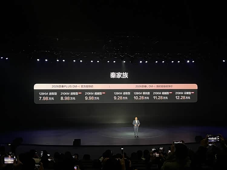 2026年1月8日,比亚迪公布了其2026款秦L DM-i 210km长续航版的正式发布。这款新车的显著特点是电池容量和纯电续航,配备了25.28度的电池,使得CLTC的纯电续航达到了210公里。此次推出的这款长航能产品是比亚迪在新能源汽车领域取得重大突破后发布的首款产品,也是目前市场上唯一一款具备长续航能力的纯电动车型。2026款秦L DM-i 210km长续航版总共推出了两种不同的车型。其中,官方定价范围是11.68万至12.68万元,权益定价在11.28万至12.28万元之间。而128km版本的售价则是9.68万至10.68万元,权益价则在9.28万至10.28万元之间。