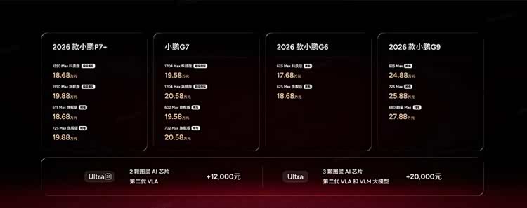 2026年开年车市有大事要发生!1月8日,小鹏汽车全球新品发布会携四款新车强势登场,18.68万起的定价击穿行业底价,更将L4级智能驾驶、1550km超长续航等尖端配置下放至主流市场。从全球同步发售的P7+到满配家庭SUV G7超级增程,小鹏以“科技平权”理念重构细分市场格局,这场发布会不仅是产品盛宴,更是中国智能汽车迈向全球的宣言。