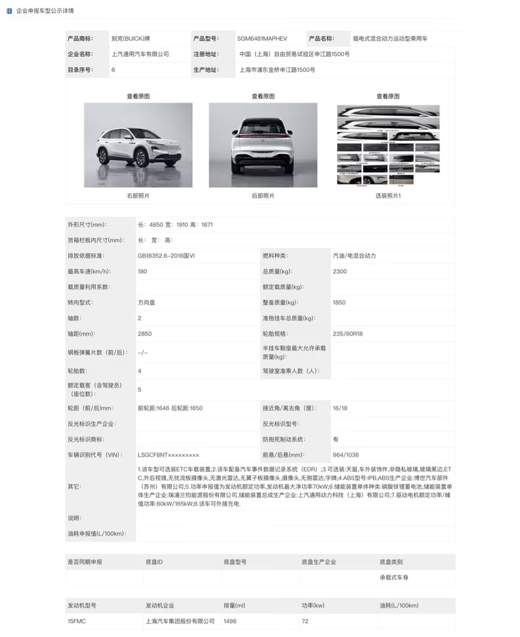 申报信息里还有个小细节,新车尾部出现了 “ELECTRA X7” 的标识,至于这是版本名、配置区分,还是后续车型规划,目前还不好下结论。