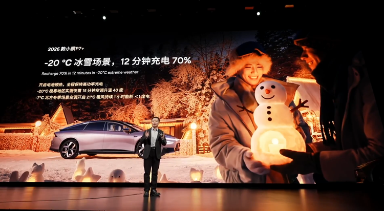 因为现在是冬天,小鹏还特意强调,全新P7+的电池热管理可以做到-20℃气温下实现12分钟充电70%、车内15分钟可以通过空调升温40℃——嗯,我想,这应该是明示准备节前买车回去过年的群体该怎么做了……