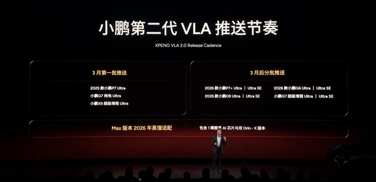 最后提一下小鹏第二代VLA的推送节奏:在3月份,这套系统会先推送到25款P7 Ultra、G7纯电Ultra和X9超级增程Ultra三款车型上;随后,这次上市的四款车型才会陆续上线,但Ultra和Ultra SE两种升级包之间看起来应该是同步的。
