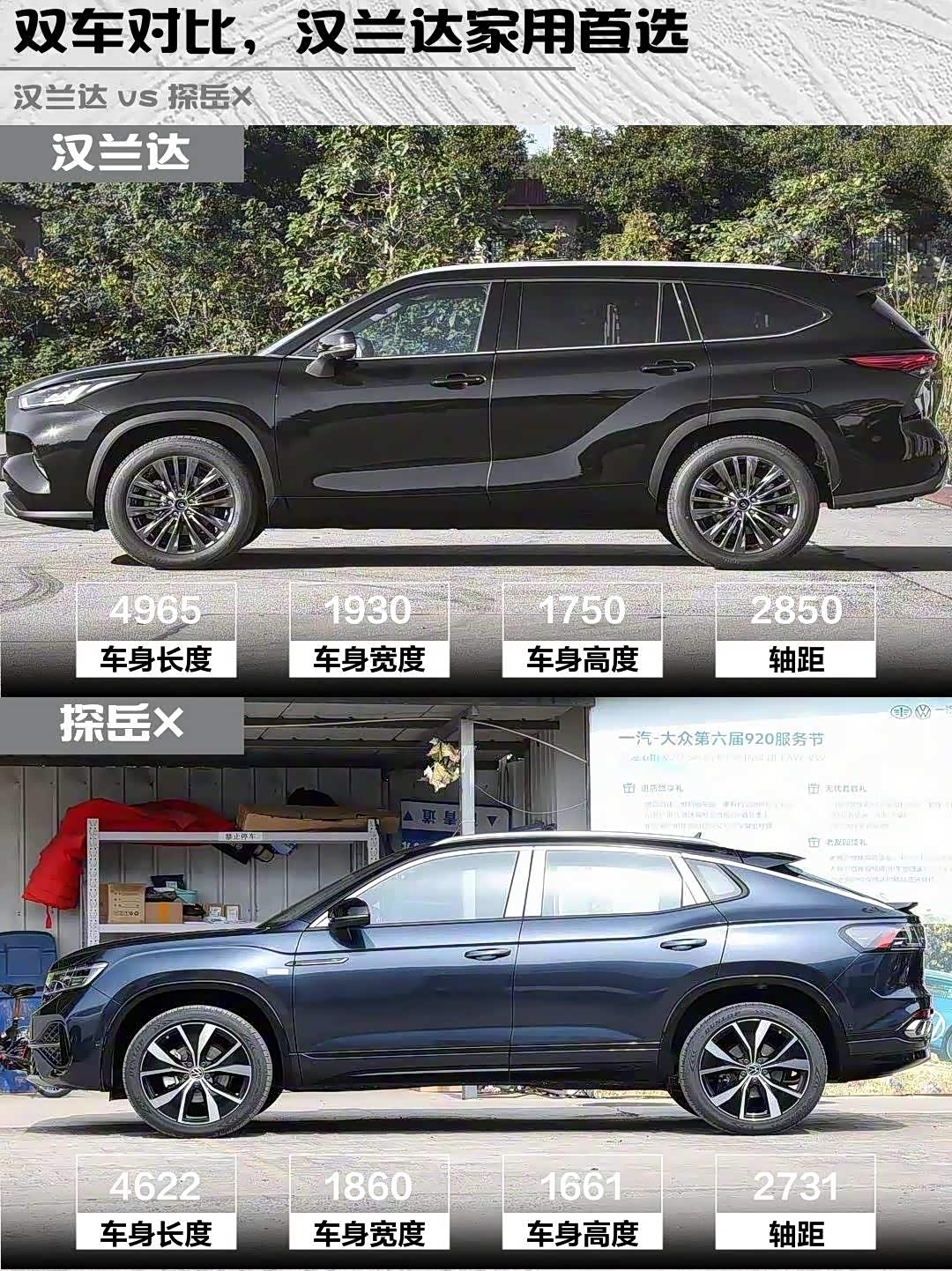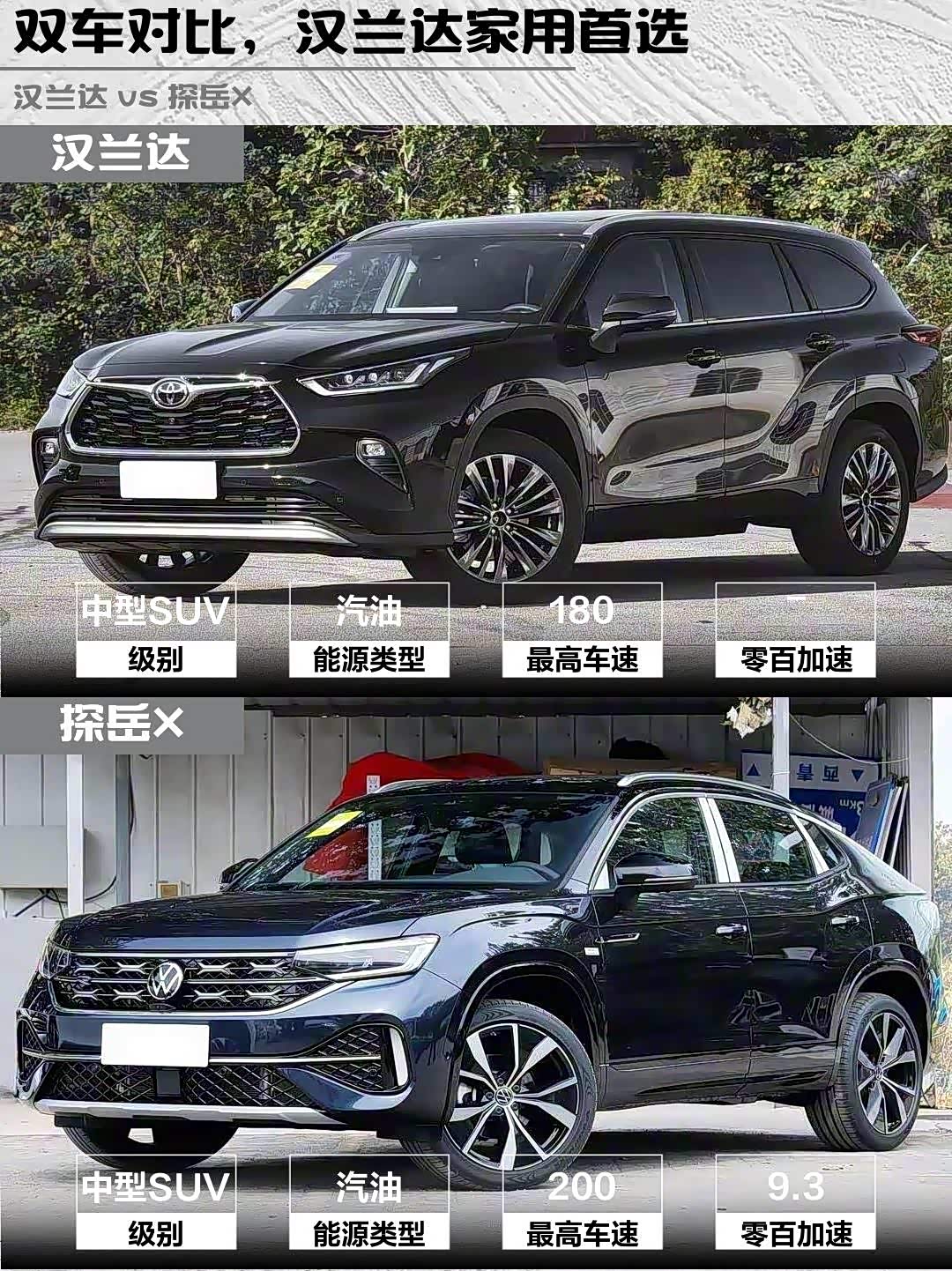 个人觉得汉兰达像务实的经济适用男,探岳X则是会打扮的潮男。你们会pick哪款呢?评论区聊聊你的选车标准吧~